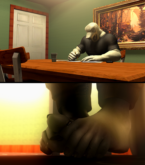 #anthro #female #floor #food #giant #giantess #gmod #hesitation #human #island #kitchen #macro #male #micro #wolf #petruz