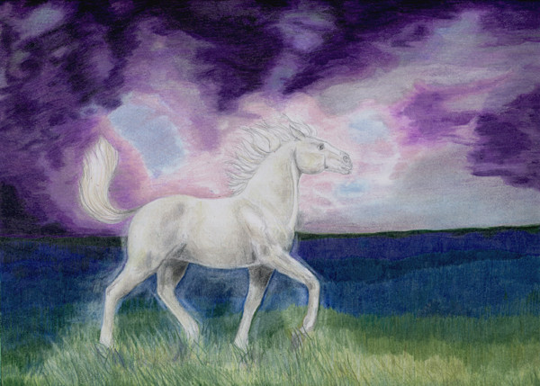 #horse #lightning #nature #stallion #storm #watercolor #wild #traditionalart #gnarlybones