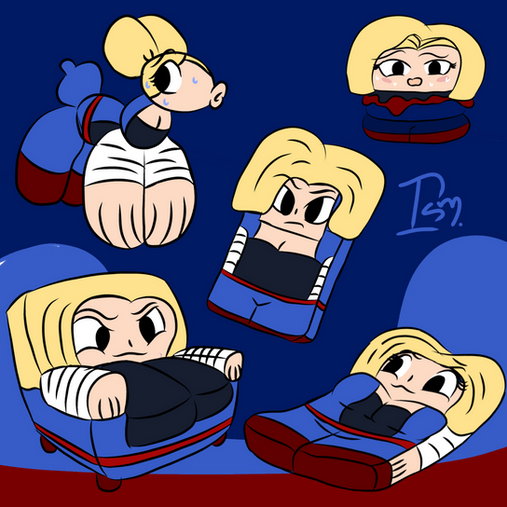 Android Eighteen exclaimed in surprise. She was as big as a house! (body inflation)