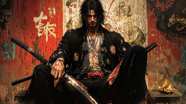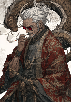 #ai #fallleaves #oldman #samurai #whitehair #woods #breard #katanasword #midjourneyart