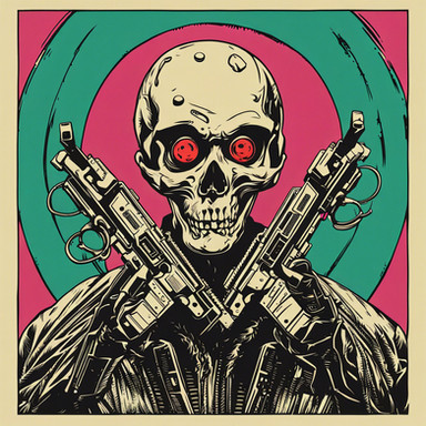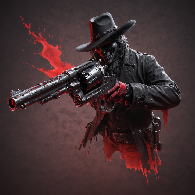 #ai #jacket #revolver #skull #glowingblueeyes #veryhighres #closeupportrait #oilpaintingstyle #midjourneyart