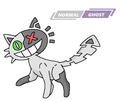 at random it will change from its two forms, when released from its pokeball it has the chance from being a spunk normal type cat pokemon to appearing as a ghost type spectral cat.