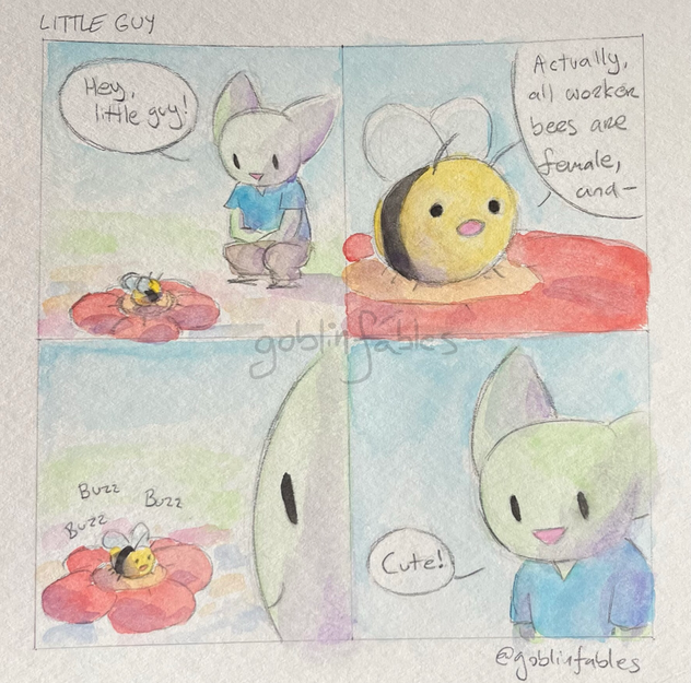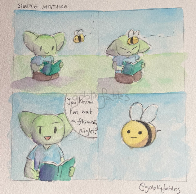 #comic #animalart #animals #bee #bees #bug #bugs #cute #funny #goblin #goblins #life #nature #watercolor #watercolorpainting #watercolour #watercolourpainting #worm #worms #fourpanelcomic #goblincore #goblinfables