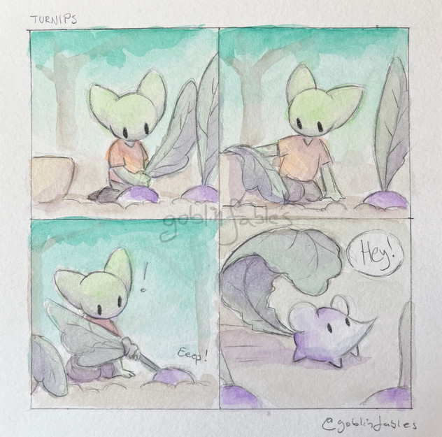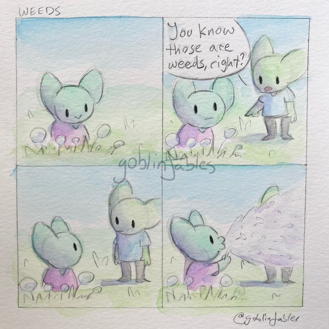 #awkward #bee #bees #book #books #comic #goblin #goblins #nature #reading #watercolor #fourpanelcomic #goblincore #outside #goblinfables