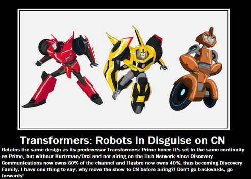 One of the many first promos for the show. This one features Bumblebee,in which meant that he was about to be the brand new leader of the Autobots for the series.Transformers Robots in disguise belong to Hasbro