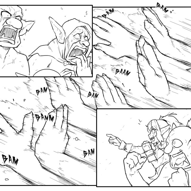 #comic #webcomic #digitalart #battle #anime #originalcharacter #warrior #action #cartoon #characterdesign #drawing #elf #fantasy #fantasyart #fantasycharacter #fight #goblin #goblins #humor #jump #manga #monochome #monster #oc #openmouth #shonen #sketch #spear #thighs #throw