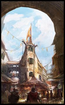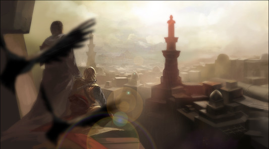 That is amazingly gorgeous. I love how subtle you made the fact that Altair is hidden from the guards' view. I also love the lighting. Well done!