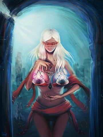 This is gorgeous, from details to color-scheme, but may I ask why you chose lizards to represent Libras? I was aware that horses were the Eastern equivalent to this particular sign. But it's a beautiful, haunting piece. I particularly like the cold fire--that's another question, sorry. Why are both fires cold blue, and not one hot red to represent the balance? I'm not criticizing, I'm honestly just curious.