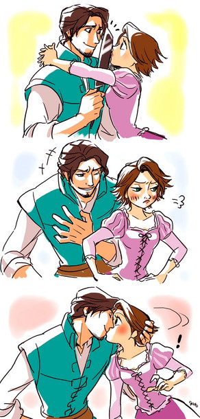 My sister looked over at the computer when I was looking at this and said (loudly) "That's cute,but why is he strangling her?" I was flustered,and the only thing I could think to say was "It's a HAPPY strangle!" ... I think i made it worse...Β Β Β Β Β It's really cute though.