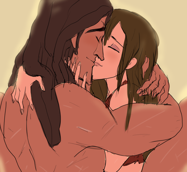 Oh...my...the raw passion is intense. Tarzan is acting out on primal animal instincts. While Jane who is used to the flowers and romance, doesn't mind the more primal approach. I mean c'mon, look at him, you would too lol