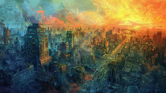 Tumbling a-tumbling chaos of a city, in gorgeous technicolour and wondrously surreal...
