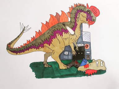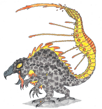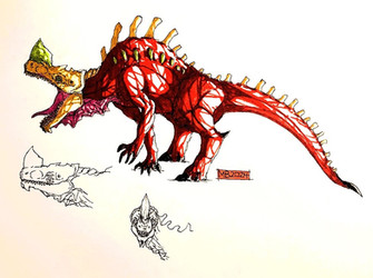 I was thinking about godzilla and thought he should be in pain and look unnatural. In my design his spines are extensions of his spinal vertebrae along with his flesh continuously falling off and regrowing to a point where he looks like a corpse.I like the final design it's how I imagine godzilla