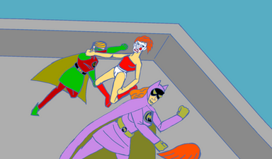 Flag Smasher has captured two more superheros.Bully for him. He looks so happy about the turn of events.