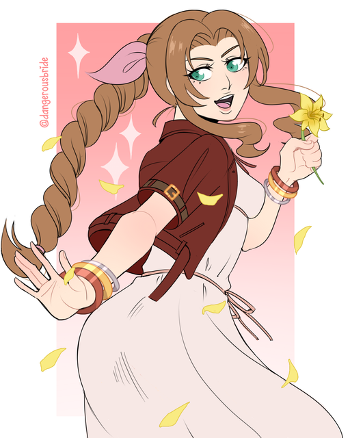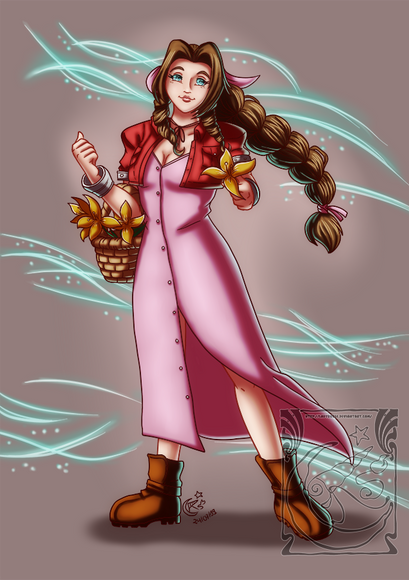 #barret #cloud #cute #day #digital #drawing #fanart #fantasy #ff7 #final #flower #girl #illustration #landscape #mage #magical #painting #pink #pinup #playstation #portrait #red #rpg #sunny #tifa #aerith #sorceress
