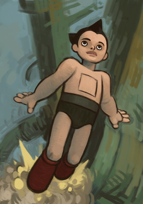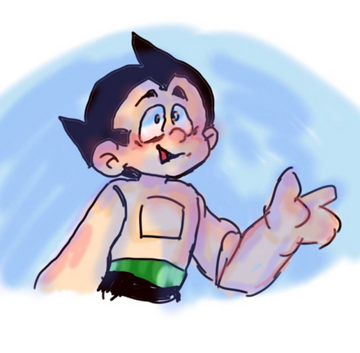 Most of what I really know about Astro Boy comes from the 2009 movie(yeah, I know…), the 2003 TV series(of which I’m only a couple episodes in and enjoying immensely), and tiny tidbits I’ve heard off hand from peeps I know. I do like Astro a great deal and will be happy to learn more about him as I watch and read about his adventures. More plumes of smoke/clouds and sky as backgrounds. I swear I don’t do this on purpose. I’m definitely working on drawing buildings, and nature, and grounded places, honest.Related content