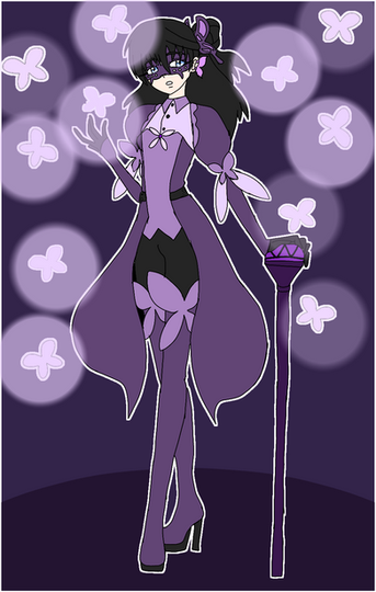 DARK WINGS RISEPart 11 of the Miraculous Mari Series! On to the villains!! Here we have Chrysalis. Her look was inspired by a Blue Morpho butterfly as well as Marinette's chinese heritage dress and hair wise. Her cape is actually her wings, she has a cane as well the top holds a black gem that let's her see what is going on in battle.