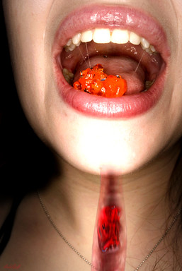 "Coraline was unaware of the tiny people that were trapped in her hot chocolate. They swam against the raging currents as they were poured into her gigantic mouth where they were tossed around by her massive tongue as she tasted her drink. As the chocolaty liquid pooled in her mouth, they became stranded on her slippery tongue which lifted up as she prepared to swallow..."Photo from coraline1408.deviantart.com/ga…