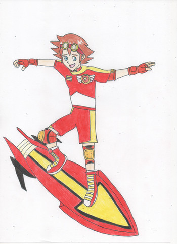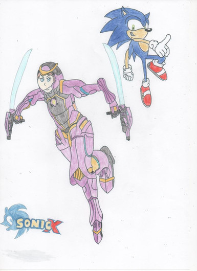 Again, it has been awhile since I last uploaded another picture of a hand-drawn sketch, and here it is. This I present to you all, calls himself, the Tri-Ranger, who is an original creation of mine inspired by the design comic book superhero characters from groups like Marvel and DC comics. He however, is for my fanfic continuation of Sonic X, for the flashback story arc of when Sonic and friends go to San Francisco and meet Chris Thorndyke's cousin, Robin Thorndyke and her family, which takes place somewhere within the Homebound Arc shortly before Sonic and friends have to go back to their home world. This individual is a masked boy shrouded in mystery, who fights crime in the city of San Francisco, which has been going on for almost a year, around the same time shortly after Sonic and friends first arrived on earth. At one point, during a bank robbery which Robin's father tried putting a stop to, but got injured in, the Tri-Ranger saved his life by getting him to safety, and since then has been in privet contact with the mysterious vigilante who would inform him of crime rigs and heists being orchestrated by crooks. (Kinda like a Batman and Detective James Gordon relationship, or Spider-man and Detective Yuri Watanabe.) For his personality, he takes crime fighting a bit serious, and at such a young age, seemingly acts like an adult. He is also to show some protective towards the Thorndyke family during their visit to San Francisco when crime lord, Ivory King begins his take over of the city. Even when protecting Robin during her fight against Sheldon in his mech suit, lends her a pair of energy blade tonfas to fight against the Chaos Emerald powered villain. For skills, he is shown to a vast of technological devices to use when crime fighting or spying on from a safe distance, such as using a mecha jet-boots to fly around to places with, a pair of twin laser pistols and a mask that shows heat vision seeking, night vision, and data scanning as well as it being used to hide his face. He is also a skilled fighter as he is shown to use some form of marital arts, but also relies on his tech to fight with.That's all I have on my new character, or should I say that? Tri-Ranger could be anyone, and it might surprise you all on who he is once his identity is reviled. Won't be long till I get back into doing my fanfic as I'm almost done help somebody else with theirs. See ya soon. And don't forget to comment.