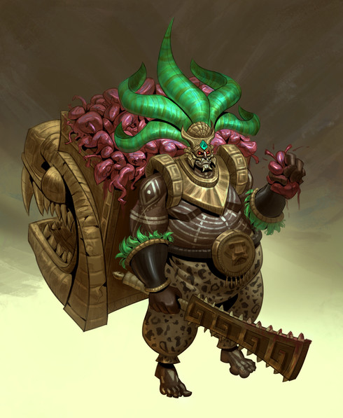 I really like the designs of his shoulderpads and his face. also i love golems and aztec/maya culture. Really awesome