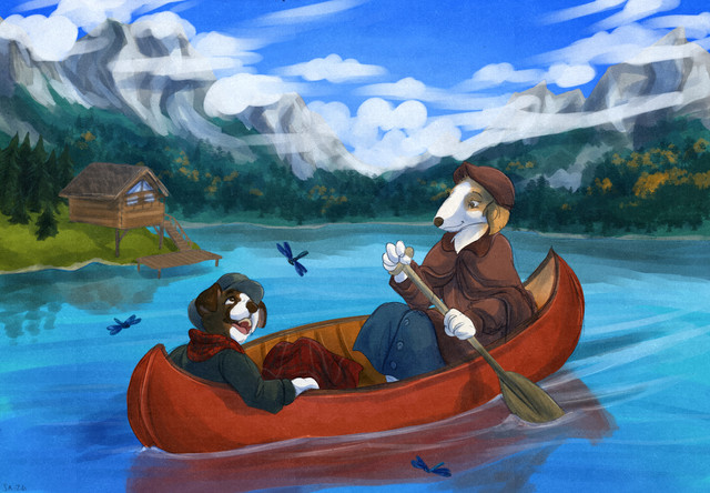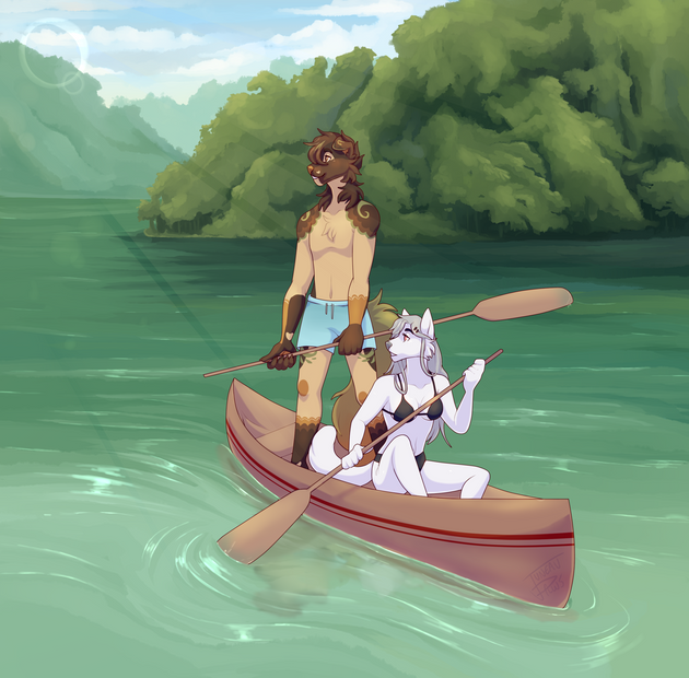 #animalart #anthro #canoe #commission #day #forest #fur #furries #furry #furryart #furryfandom #lake #mountains #nature #paddle