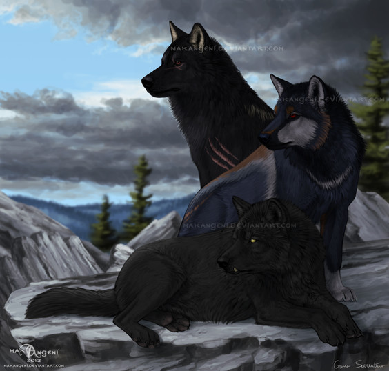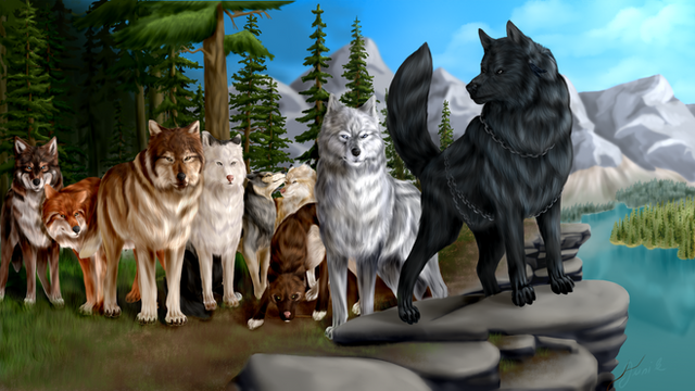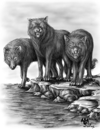 I've been wanting to show the difference, to me, between regular wolves and a werewolf in a quadruped form. To me they would be noticeably different. Can you pick which one of these beautiful creatures is the werewolf? I thought you could