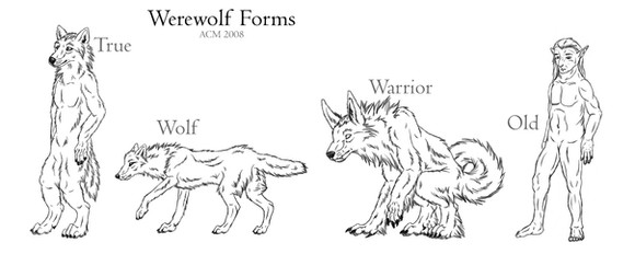 Were - To me, this is what werewolves are. Not pig-monkeys or dudes with too much body hair, or even someone changing into a natural wolf (even though all of those are other people's ideas of what a werewolf is), but shapeshifting humanoid beast wolves who are fully capable of dealing some damage and messing your world up, complete with supernatural powers baby. Werewolves are bloodthirsty ass-kickers. Very much NOT anywhere near the same as an Anthro Wolf or a Wolf Furry