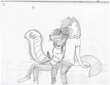 Hmm, just something I did while I was bored at school. Never let me have pens at school... this happens XDAnyway, me and two of my friends from my forums (Tempestkitsune and Kitsunefan) As anthro characters. The one in the middle is Tk as an otter and KF is the raccoon (pulling Tk's tail because it's just that fun lol) And I'm the dog sitting off to the side there. enjoy