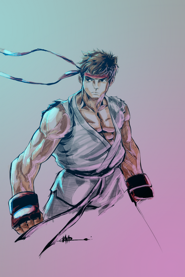 3rd attempt, this time he looks more like Guy than Ryu himself XDDDDD I think he could be the Alpha version because of his hair that looks mostly like that version...I need to practise more, indeed, with muscles too
