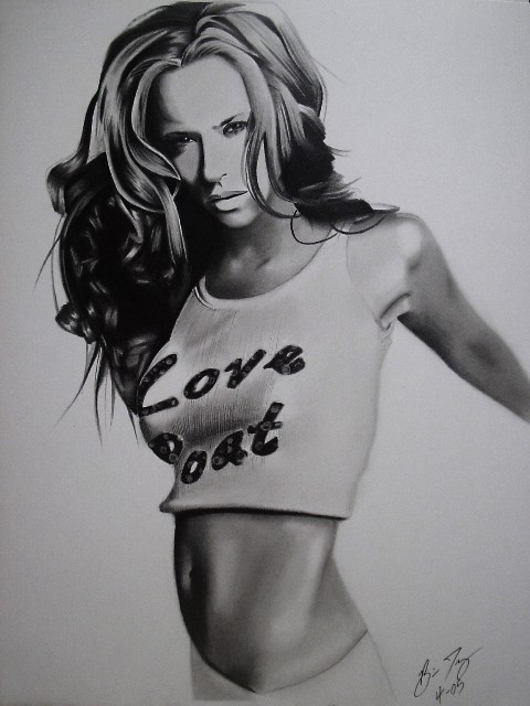 Again this is a beautifully flawless image; one critique thought about the way you do hair though, the detail you put in is amazing and lovely but her hair and in the one you did of Kate, the hair seems to be a little 'clumpy?' The details near the top are nice but as we go down the hair it just seems to end in strips, maybe there aren't enough fly-aways there? One thing I would also suggest is just darkening up those lines that you draw down the hair to show up some more of the individual pieces.