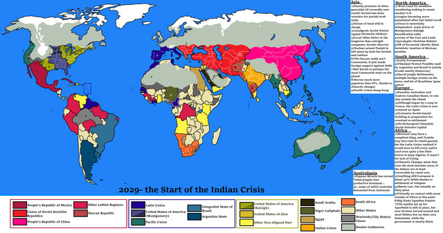 The United Nations gained a lot more power in the flood, and now there are caps on the number of soldiers national armies are allowed to have. In space, the only armies that are allowed to exist are the U.N.'s. Democracy is now global, and only the Siberians (With their multiparty dictatorship), and the Turkestanis (with their religious Caliphate) are truly authoritarian by this world's standards (though by our time's standards, there better run than most Central Asian states). Siberia and Turkestan are also the only nations on the planet that do not use the otherwise global currency.