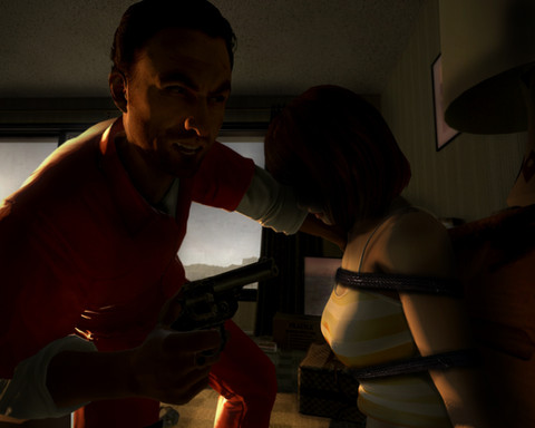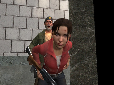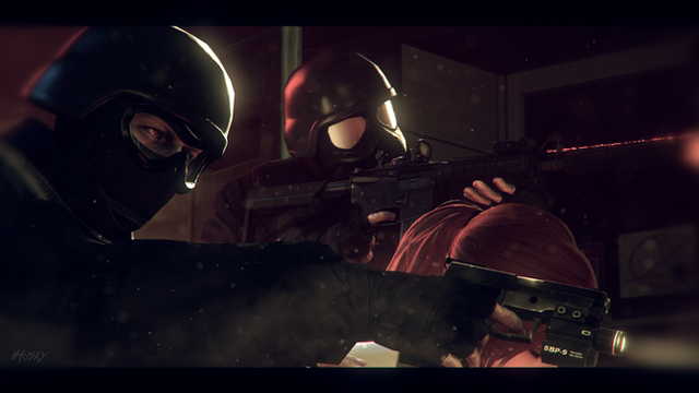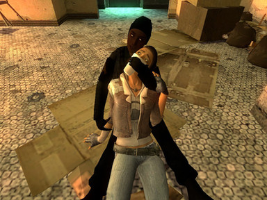 I'll be it's L4D Bill leading the Counter-Terrorist team and he's just breached the room holding an M16. The hostage standoff begins. *Queue CS:GO theme*