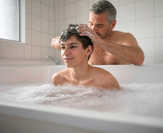 so cute but at the same time that hand covering the child's face creates an almost creepy factor to the photo, or eerie quality. Like the fingers alone cover's almost the child's entire face, making for a hand that can destroy the child or be nurturing. The hand defs says a lot. Great shot !
