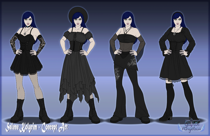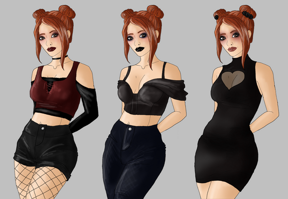 My now goth OC Evee in various goth style clothes from the site Killstar.com