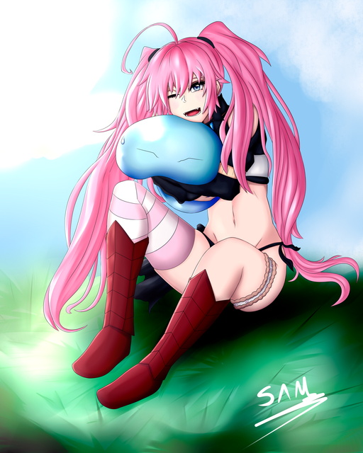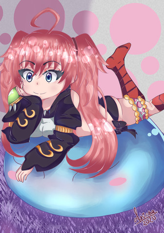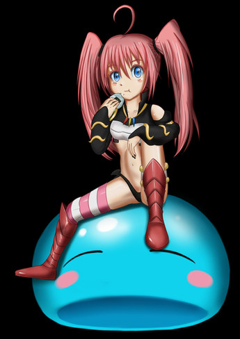 Fanart of Milim and Rimuru from :Β That Time I Got Reincarnated as a Slime.I saw Milim in a episode of season two where she was sitting in a chair by herself. I thought she looked lonely so I put Rimuru next to her. Fanart by me, character and story by the people of That Time I Got Reincarnated as a Slime.