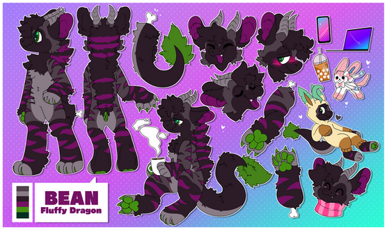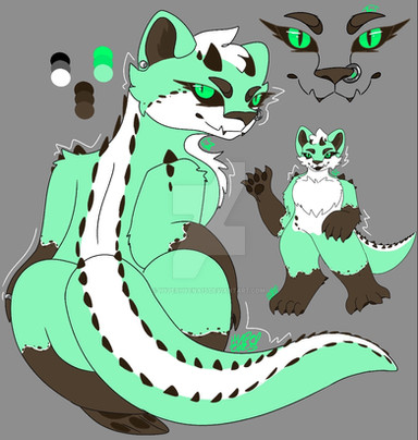#hybrid #digitalart #fursona #referencesheet #fluffy #characterdesign #dragon #commission #ferret #glowing #green #mint #rock