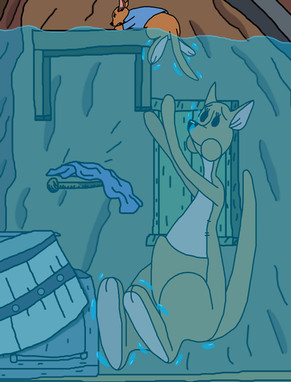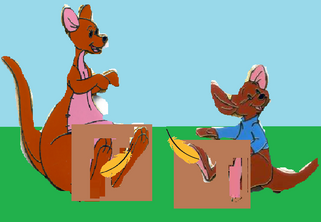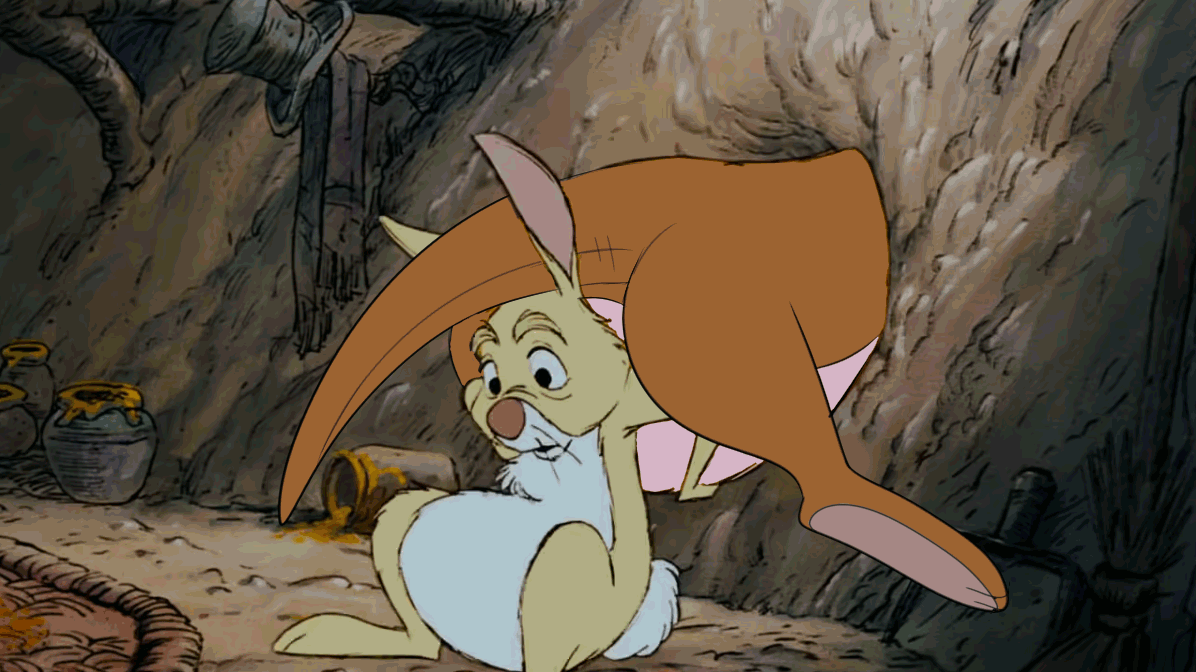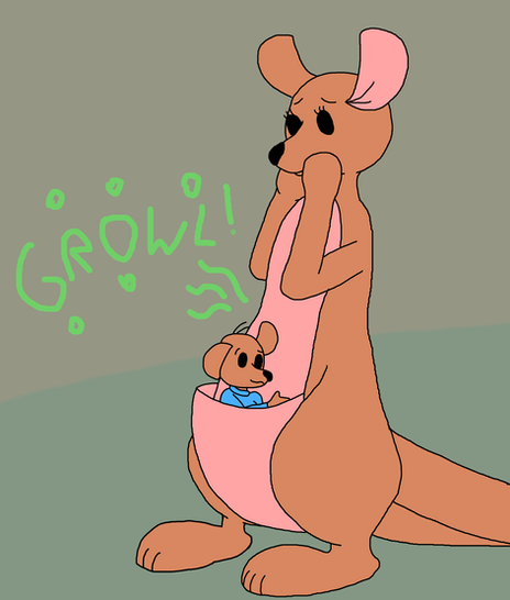 Based on two different scenarios byAs Kanga's bottom was stuck in one of Gopher's holes, Roo found his mother's tail hanging about while exploring. And just for the fun of it, Roo grabs onto her tail and starts to swing around catching Kanga by complete surprise.