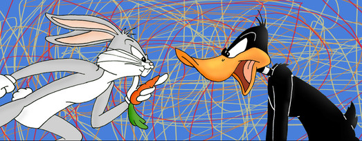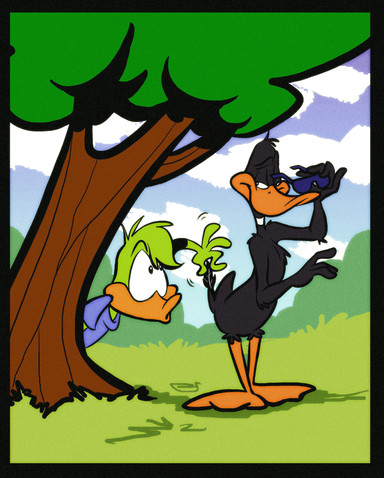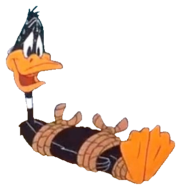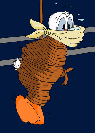 I've felt sort of trapped recently, this is just an outlet for that. The rope represents, in this case, artists block, but you could really substitute that meaning for anything really.I wanted to make this sort of optimistic piece, so I added the shears. Oh, and my inability to draw people forced me to substitute Daffy for myself, but I think it works, he was always very perserverent.