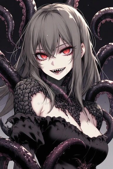 #ai #anime #animegirl #artificialintelligence #creature #finalform #girl #horrorart #monster #monstergirl #moon #moonlight #nightgown #stars #teeth #tentaclegirl #tentaclemonster #tentacles #transformation #hortor #aiart #eldritchhorror #eldritchgirl #eldritchcreature #artificialintelligenceart