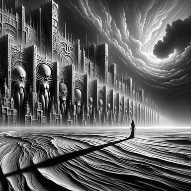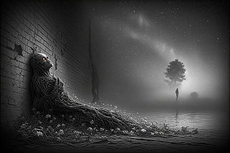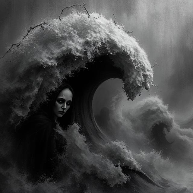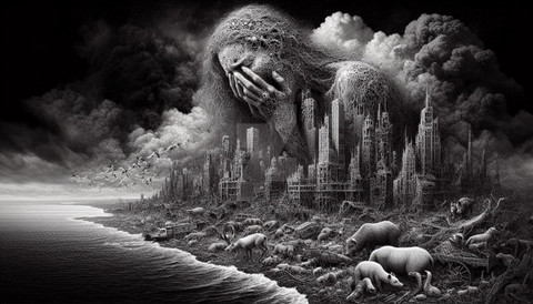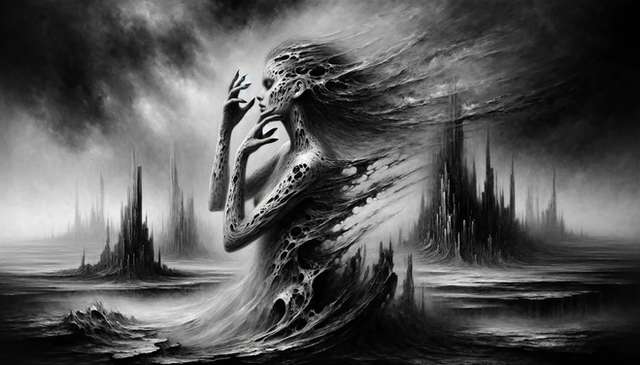 #ai #alone #artificialintelligence #blackandwhite #bowing #city #cliff #clouds #depression #despair #endoftheworld #horror #horrorart #ocean #sadness #oceanlandscape #aiart #artificialintelligenceart
