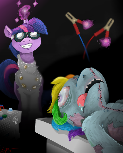 Я сначала подумал, что это дубиной, а это без шансов. Потом вспомнил про фик, там было "только" копытом. Но я пикчу вижу в первый раз, почему не включили в публикацию? Или это не для нее сделано?