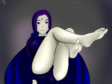 #dc #digital #fanart #yellowsuit #art #gorbathechef #comics #purpleeyes #purplehair #grayskin #raventeentitans #feetfootfetish #ravendccomics #ladylegasus