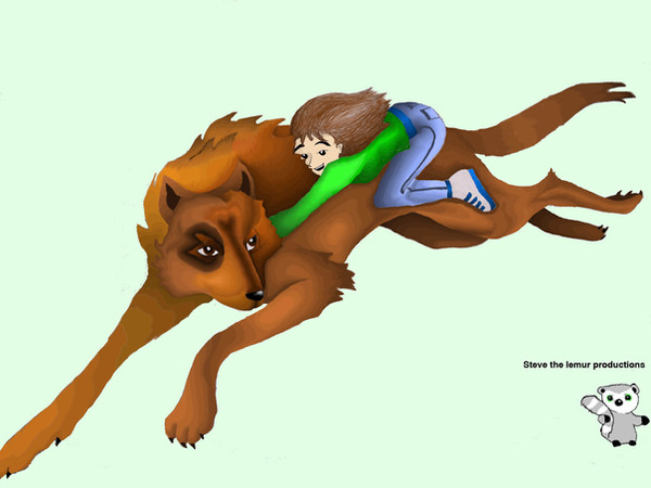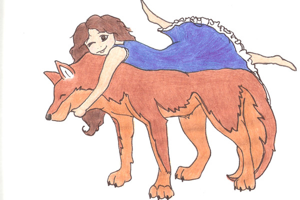 This is Jacob in his wolf-form carrying his beloved "centre of the world" Renesmee, who he imprinted on. I am fully aware that this kind of scene would never actually happen, because in NO WAY would Bella ever let her daughter run around NAKED with JACOB! ^^
