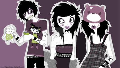 so cute! I love the purple in her hair and the skulls on the wallpaper