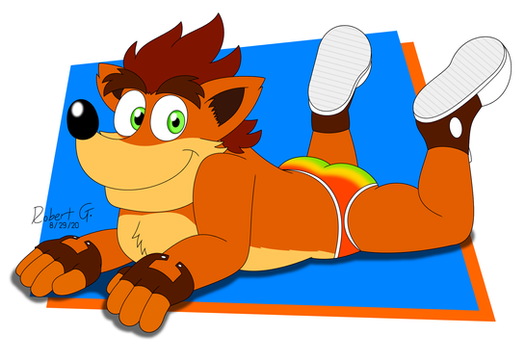 Crash Bandicoot wearing some non-canon Wumpa colored briefs. Because why not?Related content