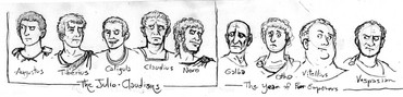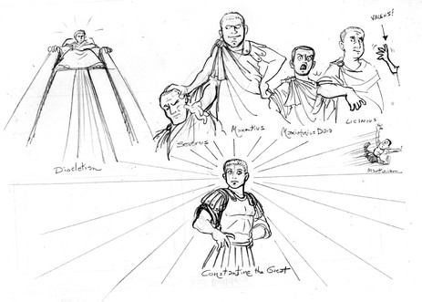 More Roman Emperors, drawn between boards while listening to the "History of Rome" podcast. In this one we have Carus (who was, supposedly, struck dead by lightning) Numerian who'd been dead in his little while on campaign, and the tetrarchy compiled by Diocletian.From Carus to Galerius.