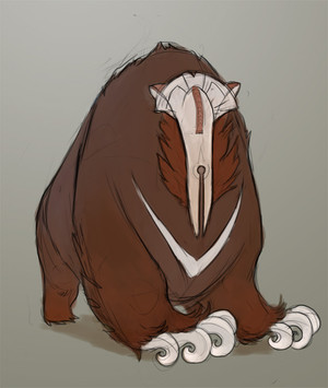 wow, uber color loss from that jpeg compression. Whatever.Anyway, another character from Character Creation class. We had to base a character on an aesthetic of another culture besides our own, so I chose Maori and Haida to portray this guardian spirit thing. It's kind of a cross between an owl, a whale and a bear.
