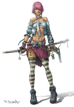 wow, everything about this rocks, from the outfit to the machine gun , and the purple hues.