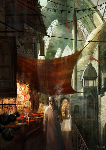 a truly amazing work of art. Them tourists are the cloaked ones who're getting stares from everyone else. fantastic surrealist rendition of existing cultures