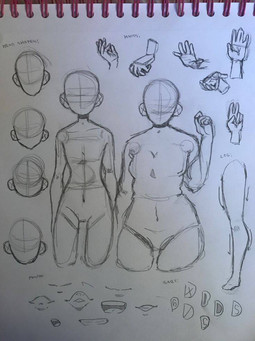Something else: Note the little dips outward off the chest in all torsos. Everything is connected. Almost nothing is straight, so keep in mind the curved lines (even the "straight arms" have some curve to them!). Also note that you can take the bust, waist, and hip measurement and put them at different heights to create a wide range of body types.