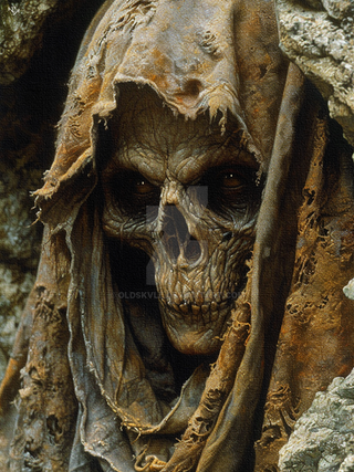 #ai #cave #cloak #dark #darkness #depths #enigmatic #fiery #figure #hidden #mystical #presence #secrets #skull #subterranean #supernatural #mystique